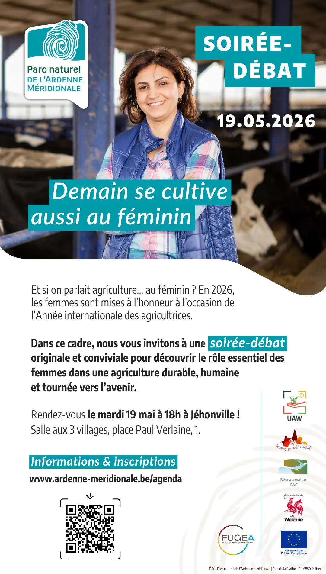 Cet évènement est organisé par le Parc naturel en partenariat avec le Réseau wallon PAC, l’ACRF - Femmes en milieu rural et l’UAW – Union des agricultrices wallonnes et la FUGEA.